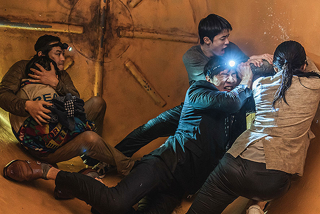 ドンウォンは反りの合わないマンスと、不運な2人の部下と共に地下500メートル下に落下。なんとか命をつなぎとめたドンゥオンたちは地上と連絡をとろうとするが、携帯がつながらない。