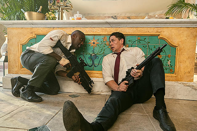 イギリスの首相サム・クラークを演じるイドリス・エルバとアメリカ大統領ウィル・デリンジャーを演じるジョン・シナは、『ザ・スーサイド・スクワッド “極”悪党、集結』(2021)で共演しており、今回もぴたりと息のあったところを見せている。